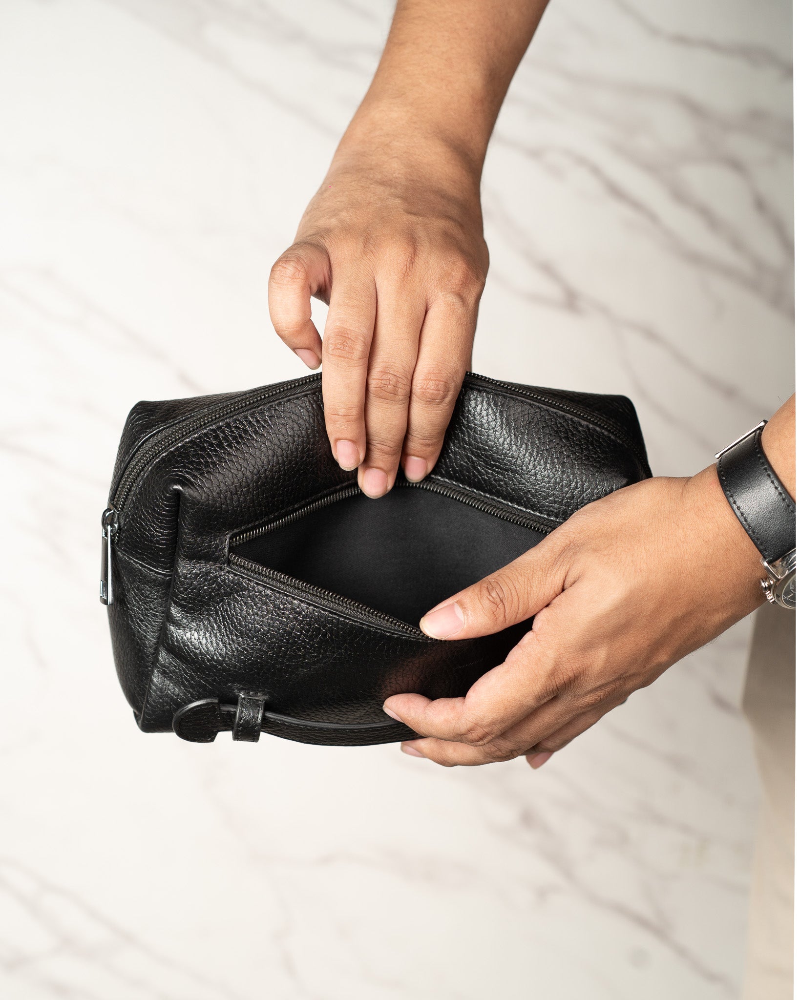 Dutchman's Compass Travel Kit eliminates all the above mentioned problems and presented me with the perfect Kit Bag. The build quality is superb, the finishing is fantastic and the cherry on top are the dimensions of the bag. Absolutely perfect for my need of carrying 2 large phones, a long wallet, a power bank and pack of smokes. Plus the clutch style handle makes it very easy and comfortable to carry.